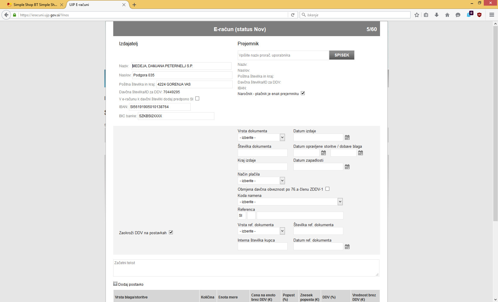 Namesto "Datum storitve" bi bilo smiselno dodati "Datum opravljene storitve / dobave blaga" z dvema koledarjema od - do, tako kot na UJP E-računi, saj pri nama veliko storitev traja daljše obdobje in je prav smešno na računu imeti samo zadnji dan (saj lahko dopišem ročno v naziv računa ali opombo, a to ni to). V primeru samo enega dneva, pač izpolniš samo zadnji koledarček.