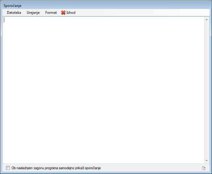 V kolikor je vklopljeno da se Sporočanje prikaže ob naslednjem zagonu bo forma avtomatsko prikazana nad vsemi že odprtimi formami (samodejni zagon vnosa računa).