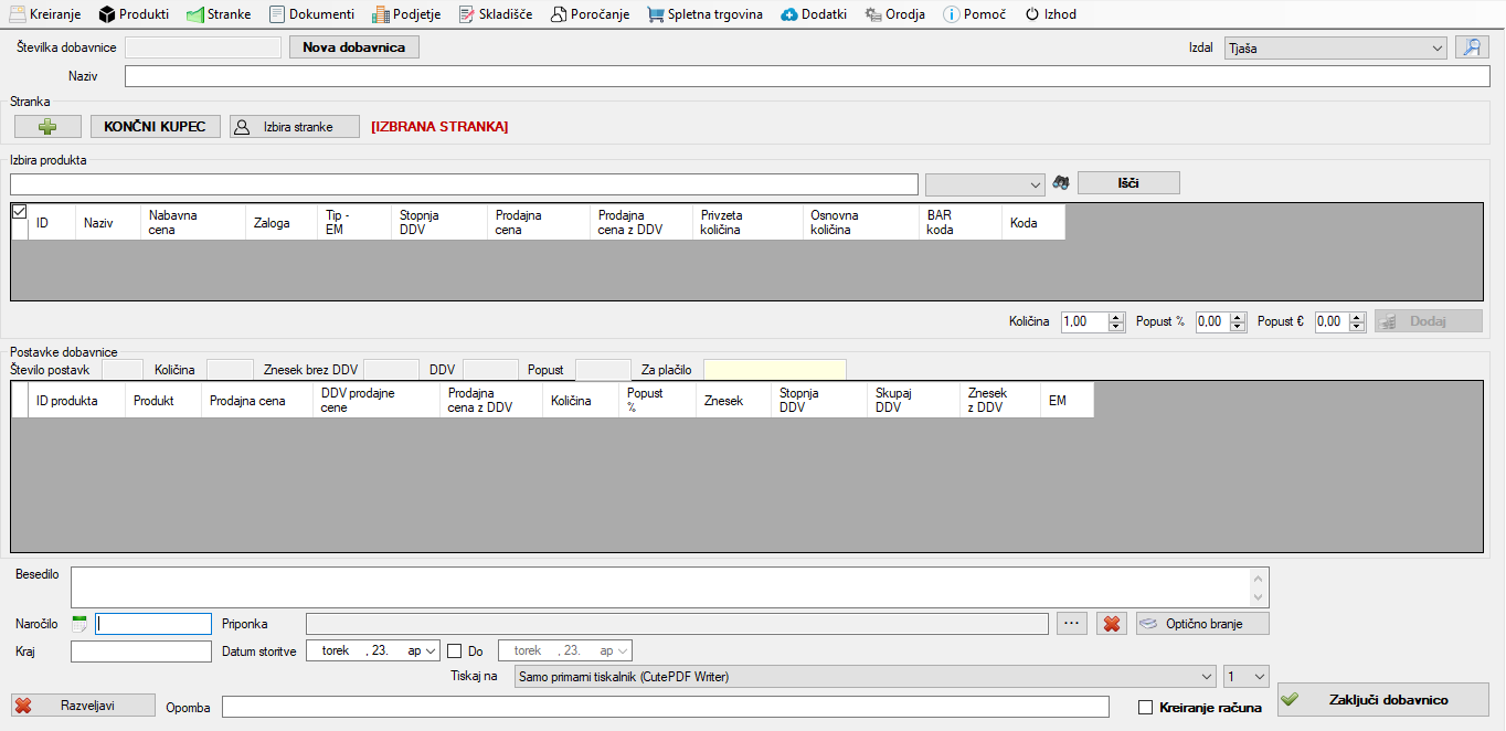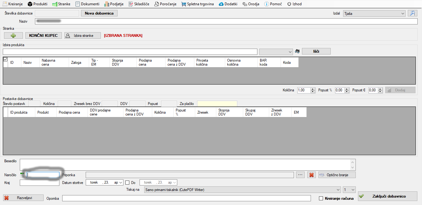 - Na tiskani dobavnici nam manjka še izpis »Naziv«