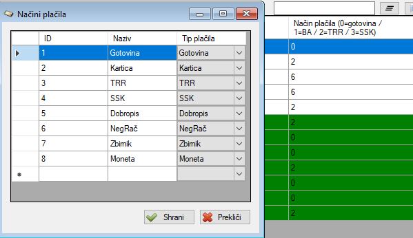 Pri "Načinu plačila" se nam števila razlikujejo in sicer če pogledamo v okno "Način plačila" imamo vse zamaknjeno za eno število (priložena slika v_25.jpg). Torej na enem seznamu imamo 1=gotovina; na drugem 0=gotovina.