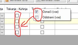 "Tiskanje - Kupon" - označi napačen stolpec (levo od njega) za "Tiskanje - Kuhinja"